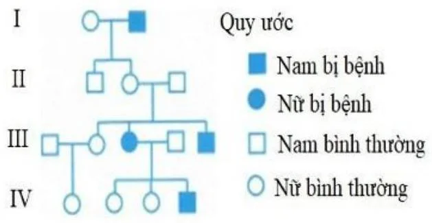 Câu 9. Phả hệ dưới đây ghi lại sự di truyền một bệnh ở người. Biết bệnh do 1 trong 2 allele của 1 gene quy định, không phát sinh đột biến mới. Gene gây bệnh là gene
