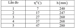 Sử dụng thông tin sau cho Câu 4 và Câu 5: Trong một cuộc thi sáng tạo khoa học, một đội thi đã đề xuất giải pháp cảnh báo nhiệt độ cho một kho lạnh mà không dùng đến cảm biến điện tử. Họ sử dụng bộ dụng cụ như hình bên và thực hiện như sau. Đặt cố định một xi lanh kín, thành mỏng, có diện tích tiết diện