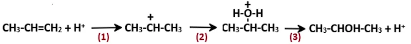 Câu 13. Cho cơ chế phản ứng của propene với H2O như sau, ở mỗi giai đoạn được đánh số thứ tự tương ứng (1), (2), (3):