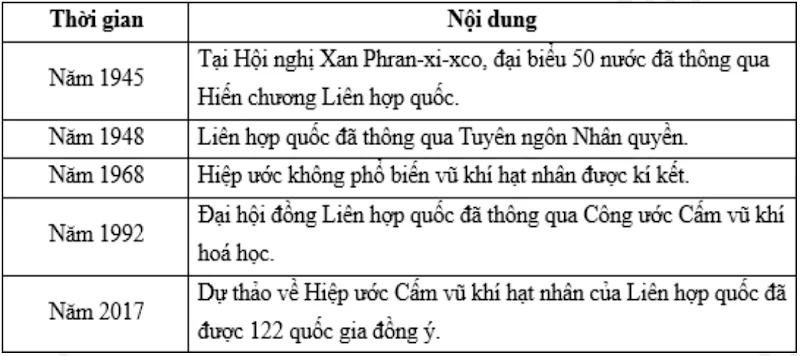 D. Công ước Cấm vũ khí hoá học được thông qua năm 1992 đã nhận được sự ủng hộ của tất cả các quốc gia thành viên Liên hợp quốc, đáp ứng khát vọng hoà bình của nhân loại.