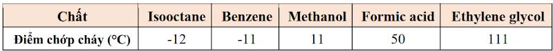 D. Methanol có điểm chớp cháy thấp hơn formic acid nên khó bốc cháy hơn.