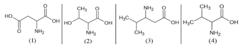 Câu 4: Cho công thức khung phân tử một số amino acid như sau: