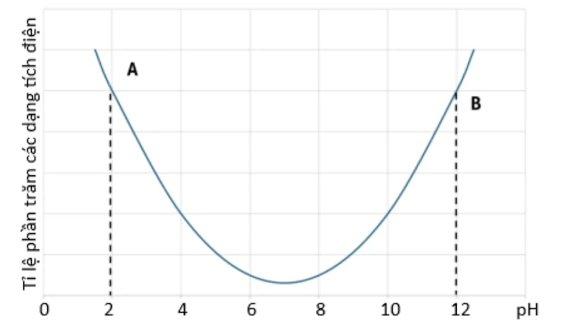 d) Khi pH tăng, điện tích của dạng tồn tại sẽ có xu hướng chuyển từ điện tích dương sang điện tích âm.