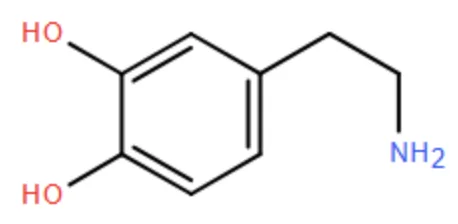 Câu 3. Dopamine (3,4-dihydroxyphenethylamine) là một chất có chức năng vừa là hormone vừa là chất dẫn truyền thần kinh, đồng thời đóng vai trò quan trọng trong việc điều khiển hệ thần kinh trung ương, đặc biệt ảnh hưởng đến việc tạo cảm giác hứng thú, động lực trong học tập, kiểm soát hành vi tư duy, trí nhớ và ngôn ngữ,... Trong y học, dopamine là một loại thuốc để tiêm tĩnh mạch, tác dụng ngoại biên của nó giúp ích trong điều trị suy tim hoặc sốc, đặc biệt là ở trẻ sơ sinh. Dopamine có công thức cấu tạo như hình dưới đây:
