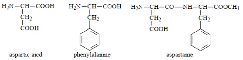 Aspartame có vị ngọt nên được sử dụng trong thực phẩm không đường dành cho người bị tiểu đường. Ở nhiệt độ cao aspartame bị phân hủy tạo các amino acid tự do không có vị ngọt.