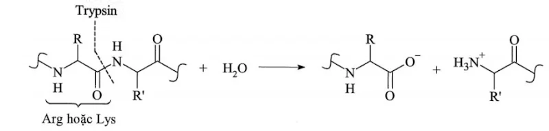 Câu 1: Trypsin là một loại enzyme có trong phần đầu tiên của ruột non, bắt đầu quá trình tiêu hóa các phân tử protein bằng cách cắt các chuỗi dài amino acid thành các mảnh nhỏ hơn. Một điểm đặc biệt là trypsin cắt các amino acid một cách chọn lọc, cắt đứt liên kết CO-NH (với phần carbonyl thuộc về amino acid Arg hoặc Lys).