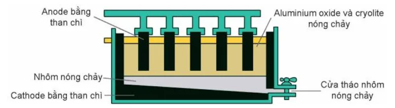 Giai đoạn 2: Điện phân Al2O3 nóng chảy.