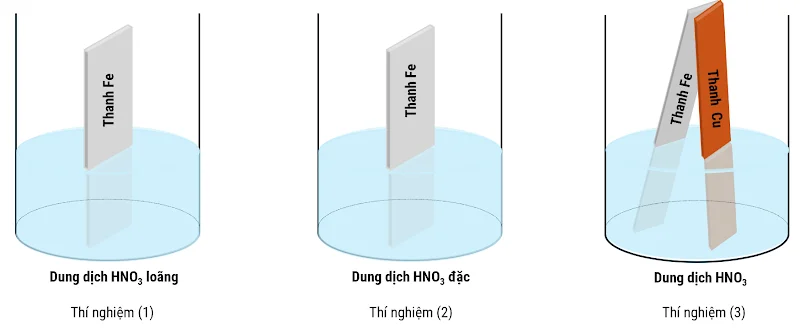 B. Hiện tượng ở (2) cho thấy trên bề mặt Fe hình thành một lớp màng oxit dày đặc, ngăn cản Fe tiếp tục phản ứng (sự thụ động hóa).