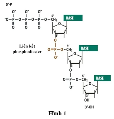 Câu 1: Hình 1 mô tả cấu trúc hóa học của một đoạn chuỗi polynucleotide đang trong quá trình tổng hợp.