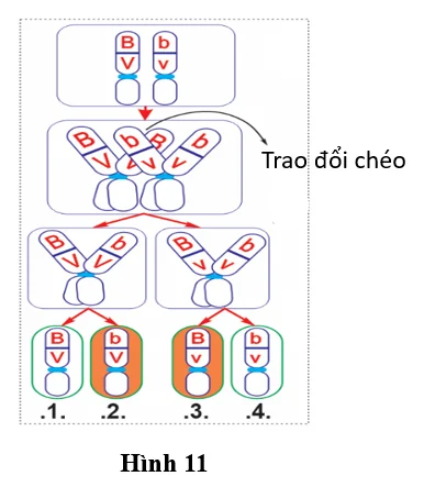 Nếu có 1000 tế bào sinh dục đực tiến hành giảm phân bình thường, trong đó có 340 tế bào xảy ra hiện tượng được mô tả trong Hình 11 thì tỷ lệ giao tử loại 1 chiếm bao nhiều phần trăm?