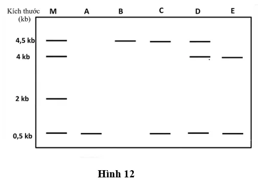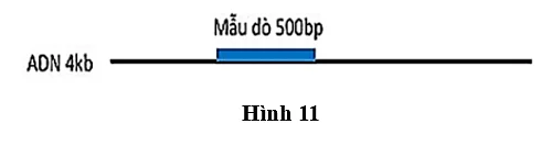 Câu 1. Một đoạn DNA mạch đơn có kích thước 4 kb (4000 base nitrogen) được lai với một mẫu dò DNA có đánh dấu phóng xạ với kích thước 500bp (500 cặp base nitrogen, trên phim phóng xạ tự chụp chỉ DNA nào có đánh dấu phóng xạ mới hiện trên phim) tạo thành DNA lai.