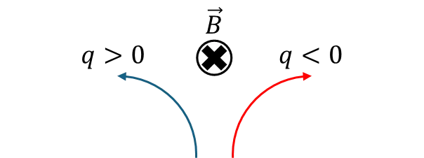 D. Khi một điện tích bay vào trong từ trường đều trong mặt phẳng vuông góc với đường sức từ, lực từ sẽ khiến chúng chuyển động tròn đều. Tùy vào dấu của điện tích, hướng chuyển động của hạt là khác nhau. Một ví dụ được minh họa trong Hình