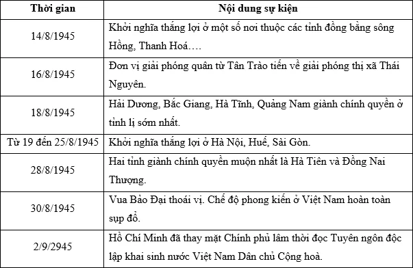 - Khởi nghĩa ở Hà Nội, Huế, Sài Gòn đã tác động lớn đến các địa phương khác trên cả nước giành chính quyền.