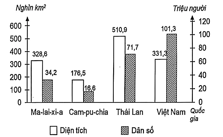 b) Việt Nam có diện tích lớn hơn Ma-lai-xi-a nhưng dân số lại thấp hơn quốc gia này.