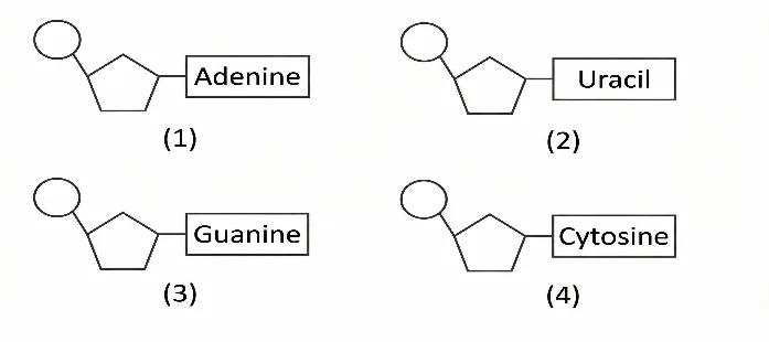 Câu 1. Hình 1 mô tả 4 loại nucleotide cấu tạo nucleic acid. Cặp nucleotide nào sau đây có thể liên kết với nhau bằng liên kết hydrogen trong phân tử DNA mạch kép.