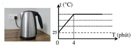 Câu 1: Một nhóm học sinh THPT dùng một ấm điện đun sôi 1 kg nước ở áp suất khí quyển , dùng nhiệt kế đo nhiệt độ của nước theo thời gian thì thu được đồ thị như hình bên. Nhiệt dung riêng của nước là .K. Cho rằng có nhiệt lượng của ấm tỏa ra môi trường. Coi sự bay hơi ở nhiệt độ thường của nước trong ấm là không đáng kể. Công suất của ấm là bao nhiêu kW? (kết quả lấy đến một con số sau dấu phẩy)