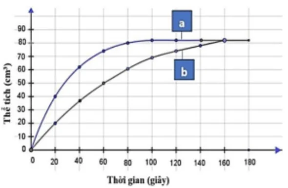 Sau đó, nhóm nghiên cứu đã đo thể tích khí sinh ra theo thời gian và xây dựng đồ thị như hình dưới.