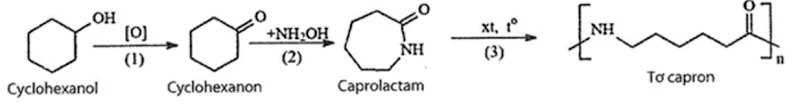 Câu 1. Tơ capron là polymer có tính dai, bền, mềm óng mượt, ít thấm nước, mau khô. Bên cạnh ứng dụng trong ngành may mặc, tơ capron còn được sử dụng làm dây cáp, dù, đan lưới, chế tạo các chi tiết máy. Một quy trình sản xuất tơ capron từ cyclohexanol được thực hiện theo sơ đồ sau: