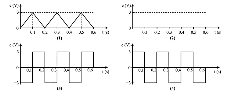 Đồ thị nào dưới đây biểu diễn đúng sự biến thiên của suất điện động cảm ứng xuất hiện trong khung dây theo thời gian?
