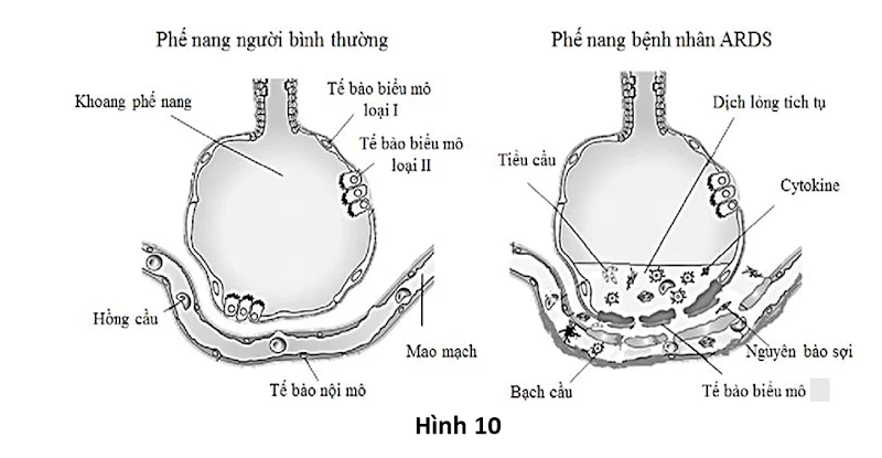 a) Sau khi virus nCoV xâm nhập, phế nang của bệnh nhân ARDS bị tổn thương.