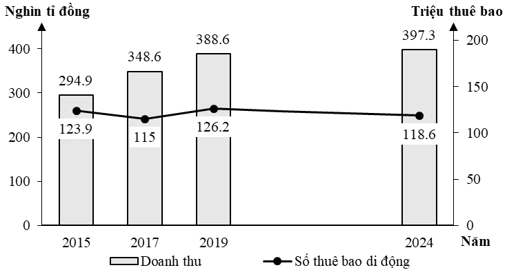 B. Doanh thu và tốc độ tăng trưởng số thuê bao di động nước ta, giai đoạn 2015 – 2024.