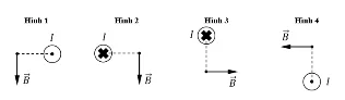 Câu 10. Hình nào sau đây xác định sai từ trường được sinh ra gần một đoạn dây dẫn thẳng mang dòng điện không đổi? A. Hình 1. B. Hình 2. C. H...
