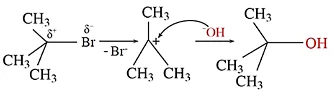 (CH3)3CBr + NaOH → (CH3)3COH + NaBr