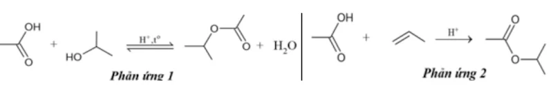 Câu 12: Cho hai phản ứng tổng hợp ester như sau: Nhận định nào sau đây đúng? A. Sản phẩm hữu cơ thu được ở phản ứng (2) có tên gọi là isopro...
