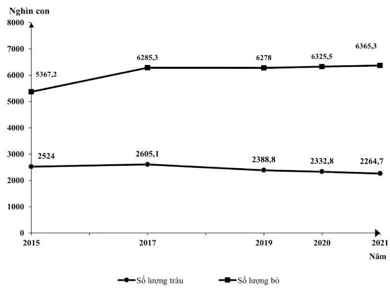 SỐ LƯỢNG TRÂU VÀ BÒ CỦA NƯỚC TA, GIAI ĐOẠN 2015 - 2021