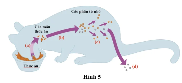 Câu 13: Hình 5 mô tả quá trình tiêu hóa thức ăn ở động vật. Các kí hiệu a, b, c, d trong hình lần lượt tương ứng với các giai đoạn nào sau đây?