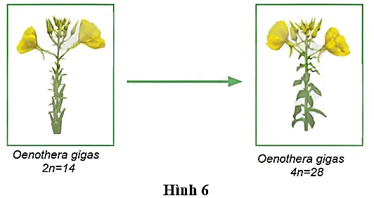Câu 13. Hình 6 mô tả cơ chế hình thành loài mới Oenothera gigas, loài này hình thành qua cơ chế