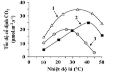 Câu 13: Một thí nghiệm được tiến hành để tìm hiểu về mối liên quan giữa nhiệt độ lá, nồng độ O₂ môi trường và cường độ quang hợp của loài thực vật ở nhóm C3 (có lúa mì) và C4 (có xanh gamma). Tiến hành bố trí ba lô thí nghiệm: