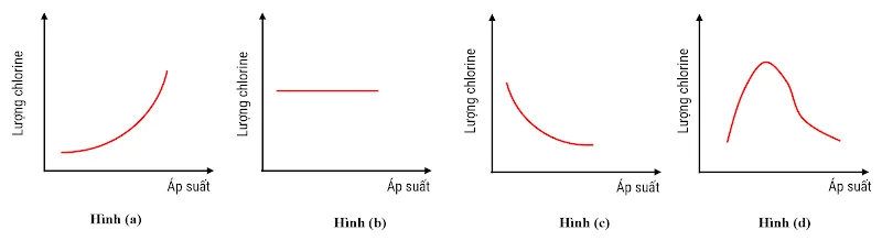 Trong các đồ thị sau đây thì đồ thị nào biểu diễn đúng nhất sự biến đổi sản lượng chlorine khi tăng áp suất ở trạng thái cân bằng?