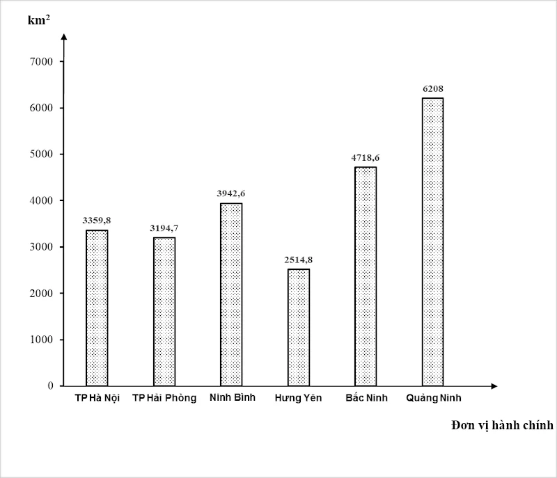 Câu 14 . Cho biểu đồ sau: Diện tích các tỉnh, thành phố đồng bằng sông Hồng, năm 2025 A. Hưng yên có diện tích lớn nhất đồng bằng sông Hồng....