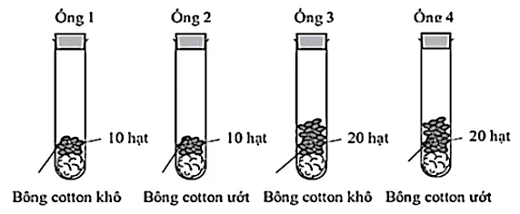 Biết rằng, các hạt đậu nành có độ nảy mầm như nhau, các điều kiện thí nghiệm khác là như nhau. Ống nghiệm nào sẽ có lượng CO2 tăng cao nhất?