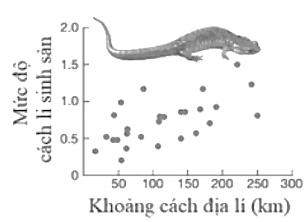 Câu 15: Người ta đã thu thập các cá thể loài kỳ nhông Desmognathus ochrophaeus ở các quần thể sống ở các khu vực địa lí khác nhau, nhốt chung trong các lồng thí nghiệm và quan sát mức độ cách li sinh sản giữa chúng thông qua tỷ lệ kết đôi giao phối, kết quả thu được như hình bên. Quan sát đồ thị cho biết phát biểu nào sau đây sai?