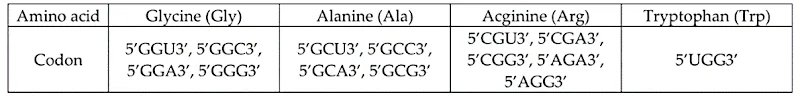 Câu 2: Allele B bị các đột biến điểm tại cùng 1 triplet tạo thành các allele B1, B2 và B3. Các chuỗi polipeptide do các allele này quy định lần lượt là B, B1, B2 và B3 chỉ khác nhau ở 1 amino acid đó là glycine ở chuỗi B bị thay bằng alanine ở chuỗi B1, arginine ở chuỗi B2 và tryptophan ở chuỗi B3. Cho biết các codon mã hóa các amino acid tương ứng ở bảng sau.