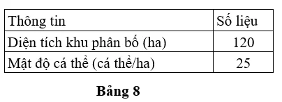 Câu 2. Bảng 8 mô tả một số thông tin liên quan đến quần thể loài A. Nếu tỉ lệ sinh của quần thể A là 14% năm và tỉ lệ tử vong là 3% năm, khô...