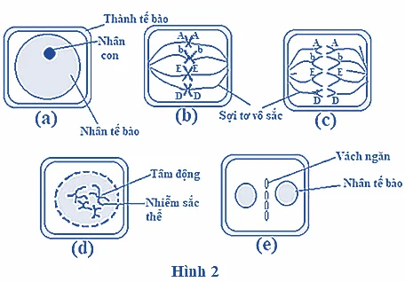 Câu 2. Hình 2 mô tả một số giai đoạn trong quá trình phân bào của một loài sinh vật. Quan sát hình, cho biết phát biểu nào sau đây đúng?