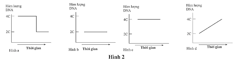 Nếu tế bào bị xử lí bằng hóa chất colchicine gây ức chế hình thành thoi phân bào thì đồ thị ở hình nào bị thay đổi?