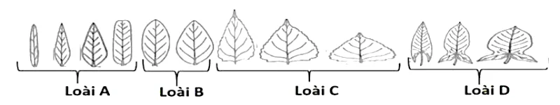 Câu 2: Hình ảnh bên mô tả các dạng phiến lá của 4 loài thực vật trong các điều kiện sống khác nhau. Hãy cho biết loài nào có mức phản ứng rộ...
