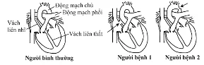 Câu 2: Hình sau mô tả tim và một số mạch máu lớn của người bình thường, người bệnh 1 và người bệnh 2. Mỗi người bệnh có một bất thường bẩm s...