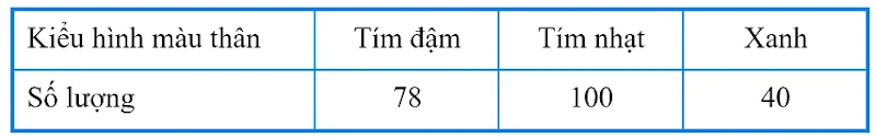 Câu 2: Một học sinh tiến hành gieo hạt cải và thống kê số lượng cây con với các kiểu hình khác nhau về màu thân sau 10 ngày gieo hạt, thu được kết quả ở bảng dưới đây.