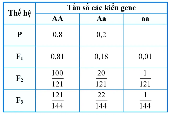 Câu 2: Phân tích thành phần kiểu gene của một quần thể thực vật qua các thế hệ thu được số liệu như ở bảng bên.