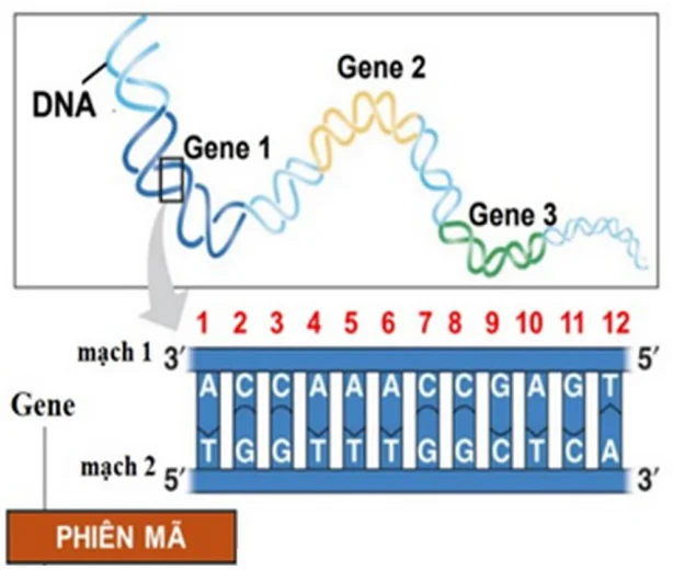 Câu 2: Quan sát hình bên cho biết, nếu đột biến thay thế một cặp G - C ở đoạn gene trên tại vị trí số 11 bằng một cặp T - A thì chuỗi polypeptide do gene đột biến quy định sẽ như thế nào?