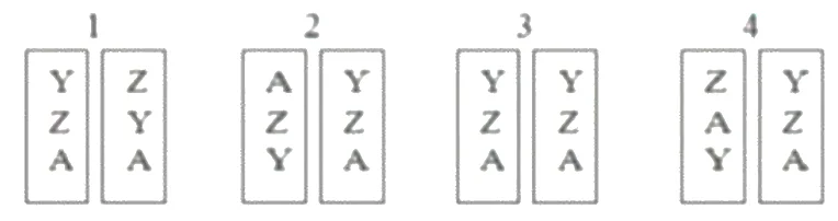 Câu 2: Trong các hình sau, hình số mấy mô tả đúng trình tự các gene (Y, Z, A) nằm trên cặp NST tương đồng của tế bào sinh dưỡng bình thường?