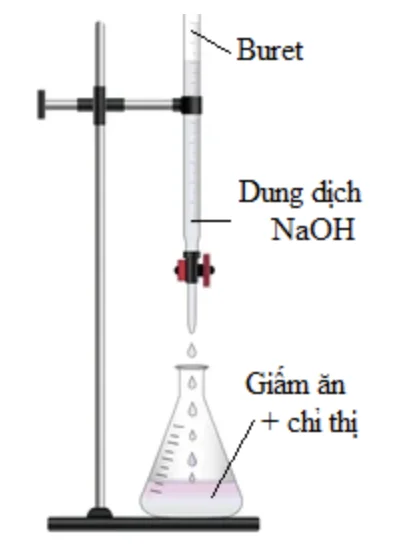 Câu 21. Để xác định nồng độ acetic acid có trong một mẫu giấm ăn, một nhóm học sinh tiến hành thí nghiệm sau: