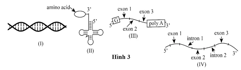 Câu 3. Cho một số phân tử nucleic acid thuộc tế bào nhân thực có cấu trúc được thể hiện ở Hình 3 dưới đây: Phân tử có cấu trúc hoàn chỉnh và...