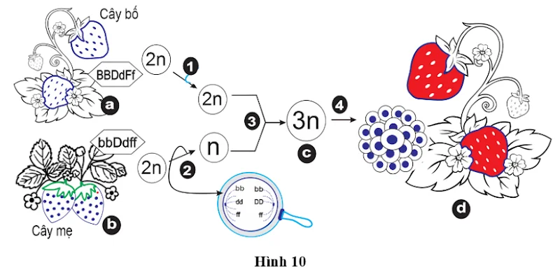 Câu 3. Hình 10 mô tả quá trình tạo giống cây dâu tằm cho năng suất cao bằng phương pháp gây đột biến: a) [3] là quá trình thụ tinh, [4] là q...