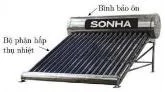 Câu 3: Hình bên là máy nước nóng năng lượng mặt trời. Máy gồm có hai bộ phận chính là bộ phận thu nhiệt có diện tích và bộ phận giữ nhiệt dù...